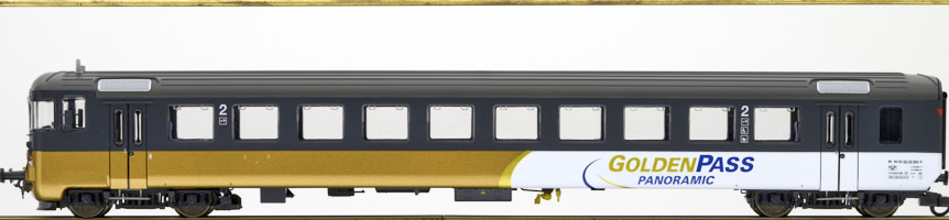 | Beschreibung: | EW I Steuerwagen 2. Kl. Golden Pass Panoramic | | Bauart / Gattungsbezeichnung: | Bt | | Bauartnummer: | - | | UIC-Nummer: | 50 63 20-33 954-8 | | Ländercode: | 85 - Schweiz | | Ländercode alphabetisch: | CH | | Haltercode: | BLS | | Halter: | BLS - BLS Lötschbergbahn AG | | Bahngesellschaft: | BLS Lötschbergbahn AG |